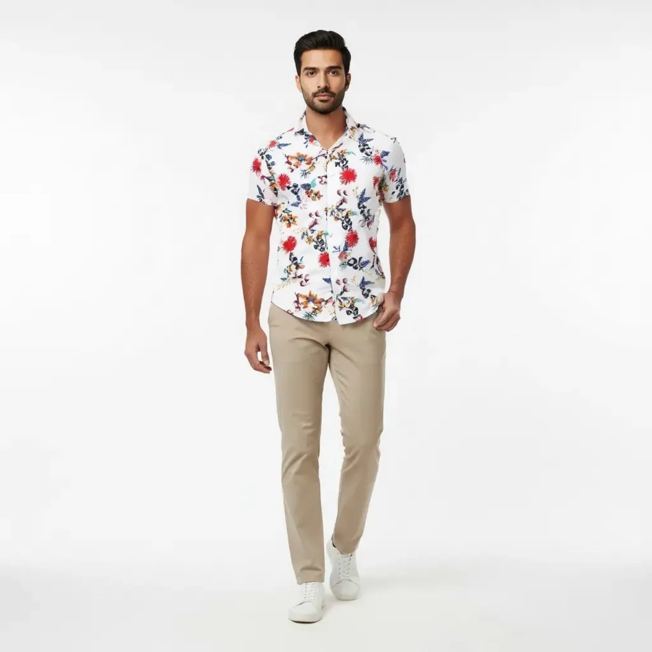The flower print shirt is a versatile addition to your closet. Pair it with classic denim for a relaxed look or dress it up with chinos to make a bold yet tasteful impression. Its colorful floral pattern brings a fresh perspective to your wardrobe, making it suitable for casual, semi-formal, and even vacation settings.